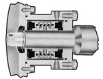 This long-lasting seal assembly utilizes standard Type D rotating seal components, plus a choice of silicon carbide, ceramic, or tungsten carbide stationary seal seats. This seal is best for maximum corrosion resistance in pure water applications, with abrasive or non-lubricating products. The stationary seat is reversible, making for quick changeover if one side is damaged. The standard seat material is silicon carbide.