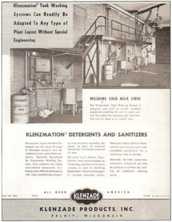 Pumps designed for today's clean-in-place systems are a far cry from the general purpose industrial units first introduced during the 1940s in dairies to replace what was then a totally manual process. The then new procedure employed tanks, piping, valves, spray balls and pumps. CIP systems also used more effective acid and chlorate detergent blends developed by the chemical industry. These blends improved cleaning capability immeasurably. In addition to providing a cleaner system, there was a huge cost savings since manual labor constituted as much as 50% of the total milk cost from farm pick-up to distribution of the product.