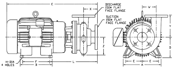 Z Series pumps offer a rugged heavy-duty industrial design with 150 lb. flat faced flanged connections, high efficiencies and mechanical seal options. Vent and drain taps are optional. Z Series pumps are close coupled to NEMA JM/JP frames. ZF Models utilize a frame mounted design.