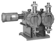 The Neptune Series 8000 "dia-Pump" is a hydraulically-actuated high-volume diaphragm pump designed for large-scale metering applications such as regeneration, pretreatment and waste treatment. Both simplex and duplex models are available.